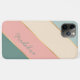 Étui contemporain pour téléphone portable avec des rayures de couleur corail rose, menthe clair et foncé, et ivoire. Avec de la place pour personnaliser avec un nom, un monogramme ou des initiales de votre choix. Belle housse moderne et cool pour la personne branchée et amatrice d'art qui veut protéger son téléphone de la poussière et de la saleté, de l'usure. Ce design est disponible pour les étuis de téléphone Apple iPhone 6, 7 et 8 Plus, 10 ou X, XR, XS, 11, 12 et 13 Mini, 14, 15 Plus et Pro Max. Montrez votre style personnel, soyez à la mode et trendy, et ressentez-vous stylé avec un design unique sur un accessoire de téléphone mobile de votre choix.