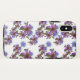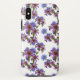 Ce coque iphone personnalisé mignon est conçu avec de jolies fleurs violettes et bleues motif sur arrière - plan blanc.