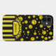 Le jaune minuscule frais a coloré la conception heureuse de motif de visage de point de polka sur le noir. Le rétro ruban de monogramme de fleur de rayure, personnalisent avec votre nom