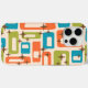 Colorée Retro Mid Century Moderne Motif Abstrait en Brown Orange Vert & Bleu.