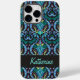 Coques Case-Mate iPhone Moderne Damask Art Déco Noir Turquoise Bleu Nom