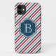 Design à thème nautique avec décoration monogramme sur arrière - plan rayé bleu, blanc, rouge et gris