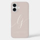 Monogram Neutral Modern Minimalist Stylish Dusty Rose Pink Ivory Script Calligraphy Initials Phone Case.