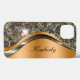 Design coque smartphone classique pour iPhone créé avec un motif de bijoux étincelant simulé numériquement imprimé sur la couverture en argent et or couleur emblème monogramme que vous pouvez personnaliser pour faire votre propre. Portez votre téléphone portable dans un style étincelant et glamour avec un éclat de bling.