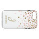 Pink and Faux Gold Foil Polka Dot Confetti Motif Élégant Coque Monogramme. Ce coque peut être customisé pour inclure votre nom initial et votre nom complet.