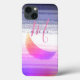Nom personnalisé et initiale monogrammée sur iPhone 13 Coque avec chic Ombre rose et violet lune et parties scintillant or abstrait.