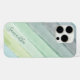 Coque iphone personnalisé avec un nom dans la tendance écriture manuscrite calligraphie. Design coloré Abstrait, aquarelle peinte à la main rayures diagonales, dans des nuances de dégradé raffiné de vert et de bleu. Accessoire technologique à la mode pour vous de protéger votre téléphone cellulaire ou une idée géniale de cadeau personnalisé à moins de 35 dollars pour elle. Convient à de nombreuses occasions et célébrations, comme l’anniversaire, Noël, la fête des mères, les anniversaires, l’obtention du diplôme, voire la retraite. Artsy esthétique premium look utile article électronique.