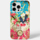 Monogramme Birdcage Oiseau rose Corail Aqua Damask étui téléphonique