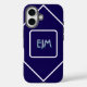 Coques Case-Mate iPhone Monogramme blanc et bleu géométrique chic