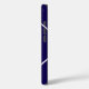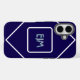 Chic coque iphone géométrique bleu et blanc personnalisé avec un monogramme. Avec des lignes blanches et un bleu classique, cette coque iphone est élégante et élégante. Idéal comme cadeau personnalisé ou pour un membre de la famille.