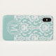 Coques Case-Mate iPhone Monogramme bleu blanc Damas