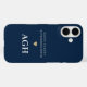 Coques Case-Mate iPhone Monogramme Bleu Blanc Drôle Typographie Or Coeur