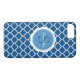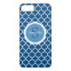 Un joli étui de téléphone portable bleu classique et moderne avec un motif de quatrefoil dans l'arrière - plan. Ajoutez votre monogramme et votre nom. Conçu pour vous par Blackberry Boulevard.