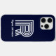 Ce monogramme moderne bleu marine iphone 15 pro max coque est à la fois tendance et classique. Il présente votre première ou dernière initiale dans une police en gras et tendance et votre nom dans une police classique de coordination en blanc. C'est simple et minimal.