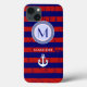 Coques Case-Mate iPhone monogramme bleu&rouge rayures et ancre