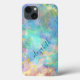 Monogramme/personnalisez ce coque iphone avec votre nom ou vos initiales. Un très joli design abstrait bleu vert rose or.