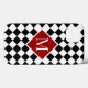 Le chic motif à damiers en diagonale noir et blanc présente votre monogramme dans un grand diamant rouge foncé avec une bordure blanche. Ajoutez votre initiale dans la barre latérale. Autres styles et modèles coques disponibles dans la barre latérale. Pour voir le Motif de tableau de bord noir et blanc de conception sur d'autres éléments, cliquez sur le lien Arts de Rocklawn. Copyright ©Claire E. Skinner. Tous droits réservés.