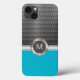 Coque smartphone monogramme pour hommes avec look métallique argent cool arrière - plan qui a un look industriel et robuste et accent bleu, le tout numériquement imprimé sur la couverture. Un coque aussi unique que vous, conçu pour un usage professionnel ou personnel.