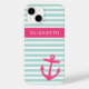 Coques Case-Mate iPhone Monogramme d'Ancre des rayures marines et roses