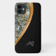 coque smartphone classique pour dames avec des initiales monogrammes que vous pouvez personnaliser en ligne. Conçu avec des oeuvres d'art arrière - plan de bijoux simulées, numériquement imprimé pour imiter l'apparence de bijoux étincelants avec de l'or et des éléments de design de couleur noire ajoute une touche moderne.