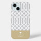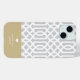 Élégant étui téléphonique personnalisé en gris, or et blanc. Ce design présente un motif de treillis marocain préppant. Personnalisez-le avec votre nom monogramme ou tout autre texte personnalisé avec un symbole de coeur mignon. Utilisez les outils de conception pour choisir les couleurs arrière - plans, modifier les polices de texte et les couleurs et télécharger vos propres photos pour créer une couverture unique d'un appareil unique!