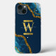 Coques Case-Mate iPhone Monogramme de géode d'âge bleu et or