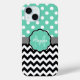 Coques Case-Mate iPhone Monogramme de menthe Pois noire Chevron