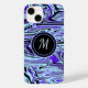Motif Abstrait d'aquarelle bleu moderne Monogram coque iphone a un design unique cool bleu violet artsy ondulé. Personnalisez-le avec votre initial.