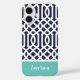 Coques Case-Mate iPhone Monogramme de Navy et Aqua Trellis