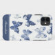 Coques Case-Mate iPhone Monogramme de papillon bleu et blanc