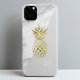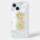 Coques Case-Mate iPhone Monogramme de pineapple en or sur marbre blanc