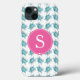 Ce boîtier téléphonique monogramme est doté d'un motif de tortue de mer couleur aquarelle dans les tons tropicaux bleu turquoise avec votre initiale personnalisée en blanc sur un arrière - plan rose. Oeuvre et design de Victoria Grigaliunas. Pour voir plus de cas de vie marine et de téléphone de plage comme cette visite www.zazzle.com/dotellabelle