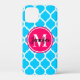 Noir, blanc, bleu aqua clair et rose chaud personnalisable monogrammed design avec un motif marocain trellis. Créez votre propre coque monogramme girly personnalisé. Essayez une police ou une couleur différente dans le système pour convenir à votre style personnel. Customisez la couleur arrière - plan. Ce design spécifique est sur des produits limités, mais vous pouvez l'ajouter à un autre coque ou cadeau.