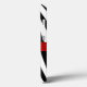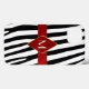Coque iphone chic motif animal sauvage avec un motif zèbre rayé noir et blanc. De jolis graphismes d'un ruban satiné rouge et d'une plaque de monogramme triangulaire rouge décorent le milieu du coque. Personnalisez le monogramme d'une lettre blanche à ce grand coque. Le moyen parfait de protéger votre téléphone, et l'apparence élégant aussi.