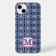 Coques Case-Mate iPhone Monogramme d'octogone blanc de Preppy Navy