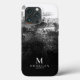 initiale, nom et profession monogrammés chic et stylés sur une coque élégante pour iPhone 13 Pro avec aquarelle et éclaboussures d'abstrait noir.