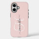 Créez votre propre nom personnalisé et votre étui de téléphone monogrammé pour son nouveau téléphone. On peut customiser l'arrière - plan de couleur uni rose pâle. Vous pouvez également customiser le monogramme personnalisé de calligraphie élégante en noir et blanc.