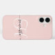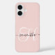 Créez votre propre nom personnalisé et votre étui de téléphone monogrammé pour son nouveau téléphone. On peut customiser l'arrière - plan de couleur uni rose pâle. Vous pouvez également customiser le monogramme personnalisé de calligraphie élégante en noir et blanc.