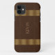Coques Case-Mate iPhone Monogramme en cuir Brown et rayures en or