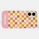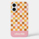 Faites une déclaration audacieuse avec ce boîtier de téléphone personnalisé avec un motif à damier tendance dans des teintes orange, rose et crème vibrantes. Personnalisez-le avec votre nom dans une police rétro amusante pour une touche ludique et unique. Idéal comme cadeau pour une personne qui aime les designs audacieux et rétro, ce coque allie style accrocheur et protection durable.