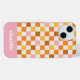 Faites une déclaration audacieuse avec ce boîtier de téléphone personnalisé avec un motif à damier tendance dans des teintes orange, rose et crème vibrantes. Personnalisez-le avec votre nom dans une police rétro amusante pour une touche ludique et unique. Idéal comme cadeau pour une personne qui aime les designs audacieux et rétro, ce coque allie style accrocheur et protection durable.