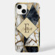 Coques Case-Mate iPhone Monogramme en marbre géométrique en or noir tendan