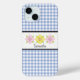Coques Case-Mate iPhone Monogramme Floral à Carreaux Gingham Bleu