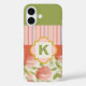 coque iphone Créé dans une jolie fleur et rayures motif de corail rose, orange et vert tendre que vous pouvez personnaliser en ajoutant votre propre monogramme. Convient à une variété de modèles. Choisissez le vôtre dans le menu déroulant.