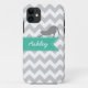 Coques Case-Mate iPhone Monogramme gris de coutume de ruban de turquoise