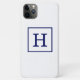 Coques Case-Mate iPhone Monogramme initial encadré bleu marine blanc