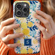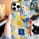 Coques Case-Mate iPhone Monogramme Initial Floral Bleu et Jaune