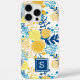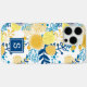Coques Case-Mate iPhone Monogramme Initial Floral Jaune et Bleu