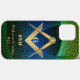 Carré en or élégant et compas Symbole maçonnique étui téléphonique personnalisé avec un arrière - plan fractal moderne.