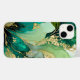 Coques Case-Mate iPhone Monogramme moderne en marbre vert or personnalisé